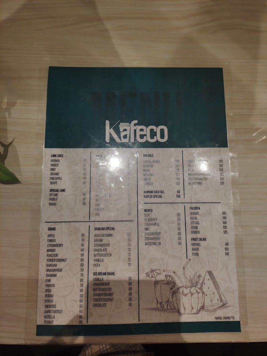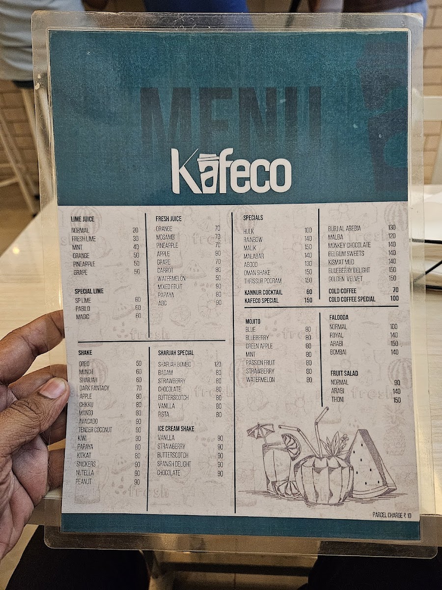 Welcome to Kafeco, a vibrant café located in Kozhencherry, Kerala, where freshness meets creativity. Renowned for its refreshing juices and shakes, Kafeco offers a variety of choices that cater to every palate. From the luscious Watermelon juice at ₹60 to an enticing Mixed Fruit blend for ₹100, each drink is crafted to rejuvenate your senses.